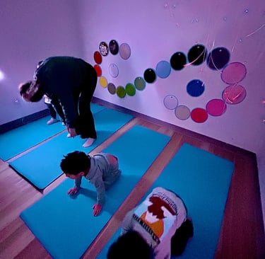 Ateliers de yoga ludiques parents-enfants favorisant la connexion, la confiance et le bien-être à travers le mouvement et le jeu.